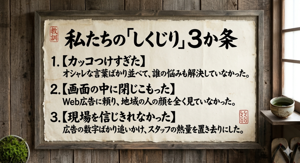 私を救ったのは、綺麗なデザインではなく「泥臭い地道な一歩」でした。地域イベントに足を運び、お客様と直接つながり、現場の熱量を立て直す。その時、初めて広告が「生きた武器」に変わったのです。